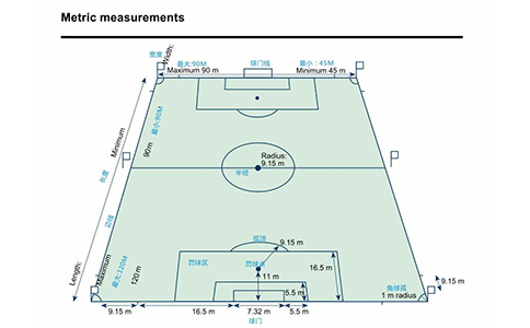 国际田联足球场地施工画线图,场地尺寸以及相关设施的介绍!