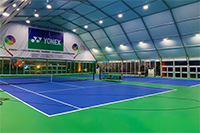 网球场地面铺设运动地面系统有人造草、运动木地板和丙烯酸塑胶地板材料。