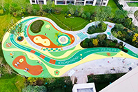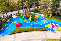塑胶游乐场施工工艺步骤:水泥/沥青基层处理、涂底漆、弹性层摊铺、喷涂面层及划线。