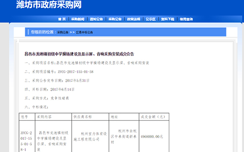 2017年6月17日中标昌邑市龙池镇初级中学塑胶操场建设项目公告