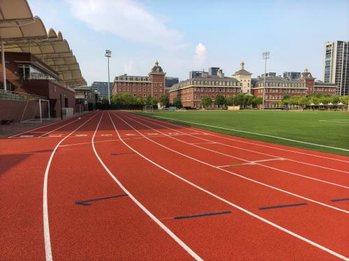 2023年由杭州宝力体育设施工程有限公司承建的杭州师范大学附属中学400米塑胶跑道(R=36.5m,混合型)田径运动场,经中国田径场协会验收合格。