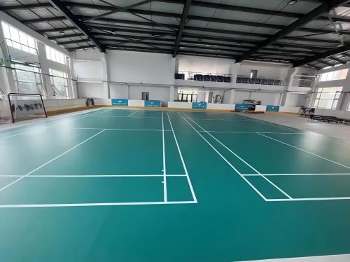建设羽毛球场地可选材料包括:木地板(弹性佳、维护成本高)、PVC塑胶(防滑耐磨、易清洁)、丙烯酸(户外适用、性价比高)、硅PU(缓冲性好、环保耐用)。