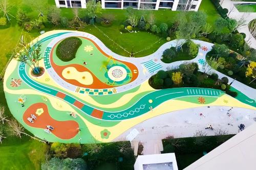 小区儿童游乐场地面材料需兼顾安全、耐用与环保。常见选择包括:EPDM橡胶颗粒(弹性佳、防滑减震)、塑胶地垫(安装便捷、色彩丰富)、人造草坪(美观舒适)、沙池(低成本但需定期维护)、悬浮拼装地板(透水防滑)。