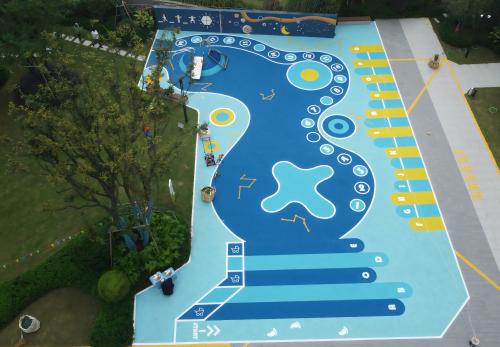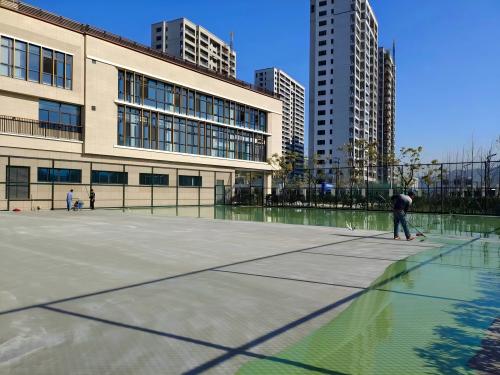 小区EPDM塑胶地面施工需先处理基层,确保平整、干燥、无油污;涂刷底胶增强粘结力;按比例混合EPDM颗粒与胶水,分层摊铺并压实,控制厚度及平整度;面层喷涂或撒颗粒,固化后划线修边。