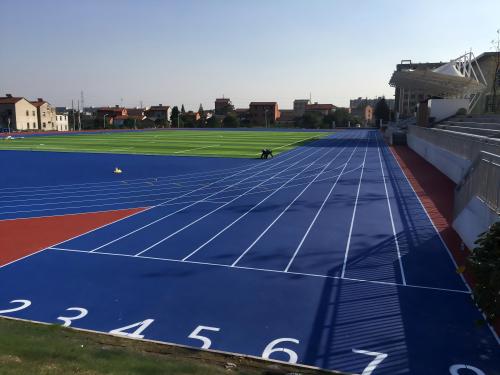 混合型塑胶跑道优点显著,可全天候使用,耐候耐磨,弹性与耐冲击性强,能减少运动伤害,平整度佳且防滑,色彩美观,粘接力强无起泡剥离,使用寿命长。不过,其建设成本较高,维护保养复杂,对基础强度要求高,基础易裂时跑道易下沉。