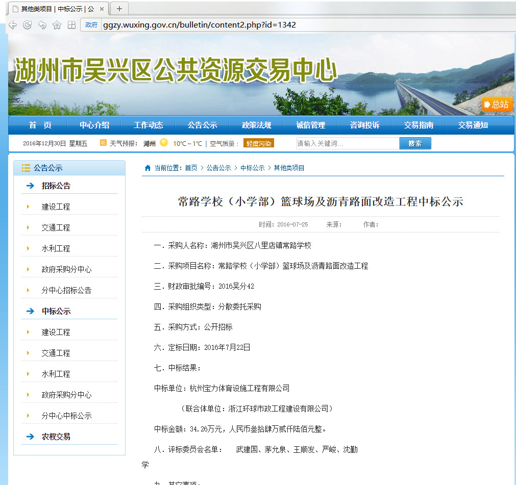 杭州宝力体育中标常路学校(小学部)篮球场及沥青 路面改造工程