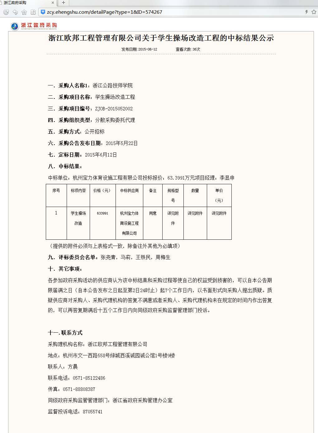 杭州宝力体育中标浙江公路技师学院学生操场改造工程