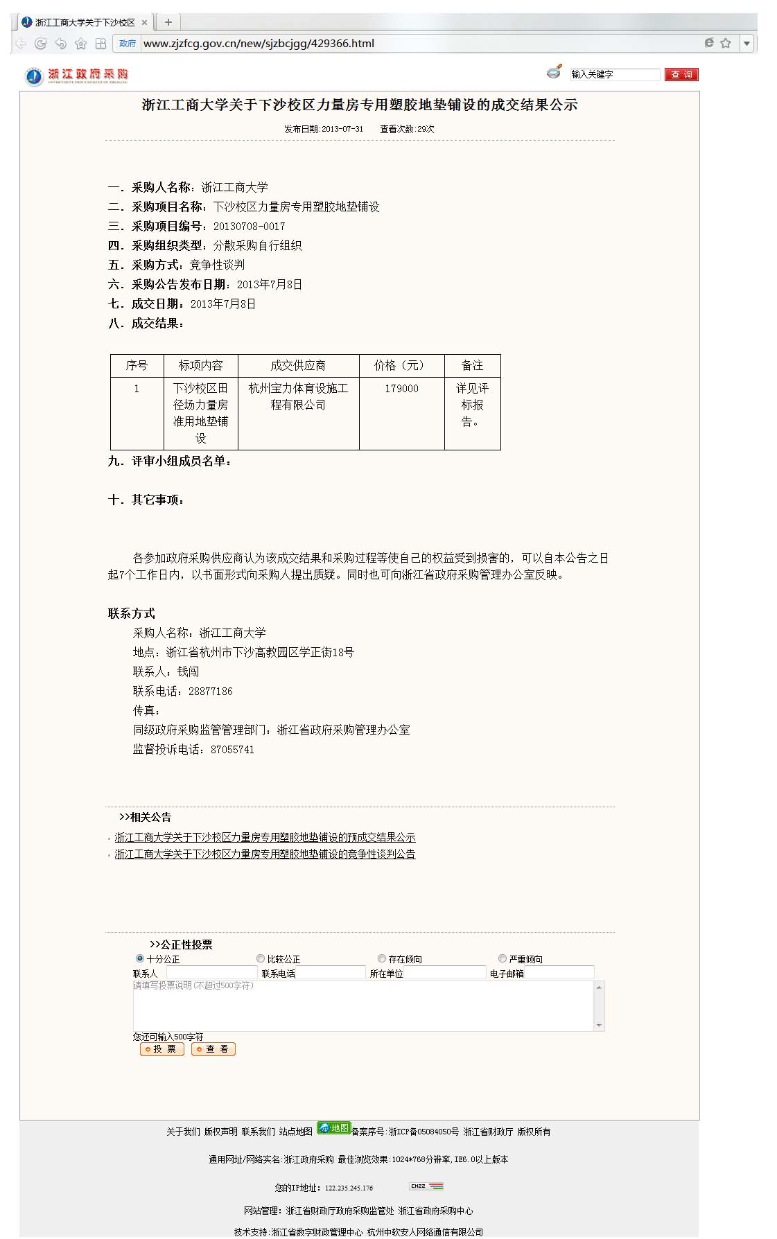浙江工商大学关于下沙校区力量房专用塑胶地垫铺设