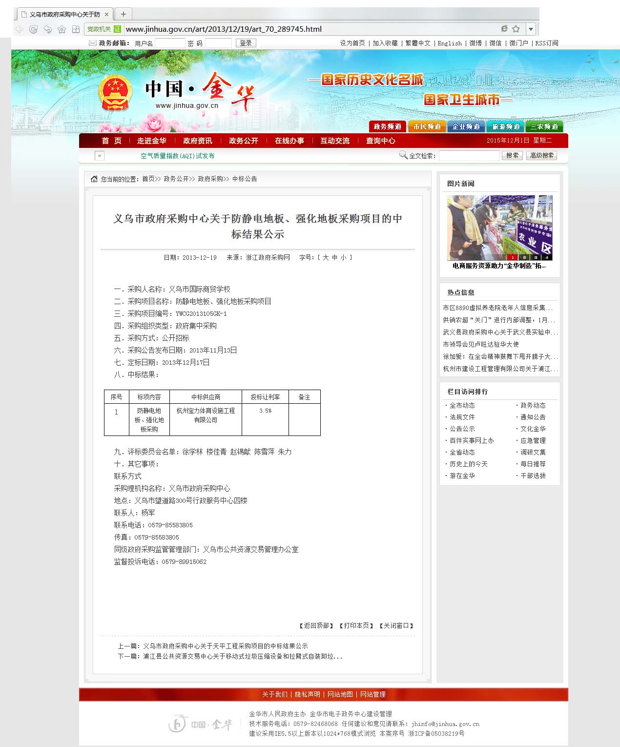 义乌市政府采购中心关于防静电地板、强化地板采购项目