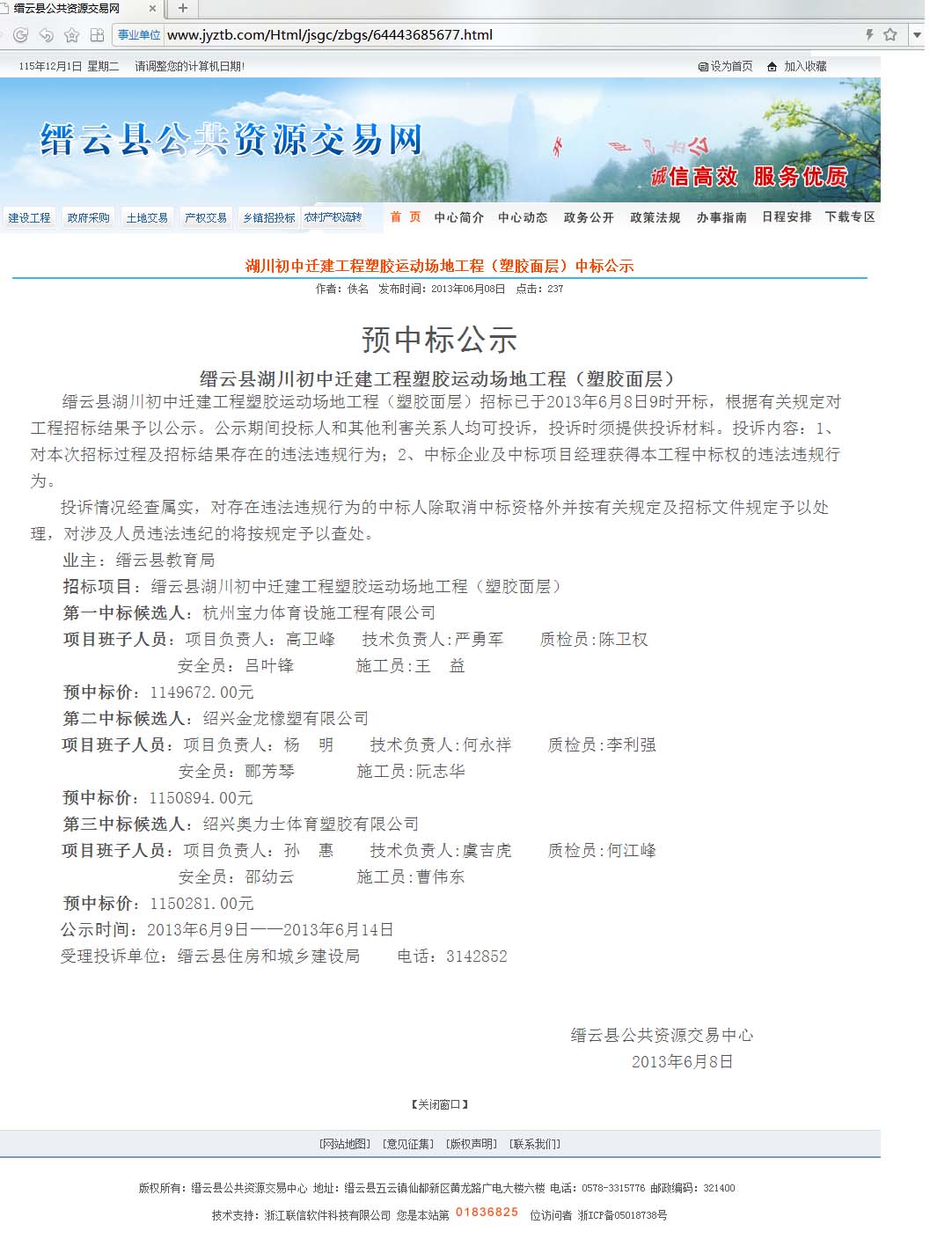 湖川初中迁建工程塑胶运动场地工程(塑胶面层)