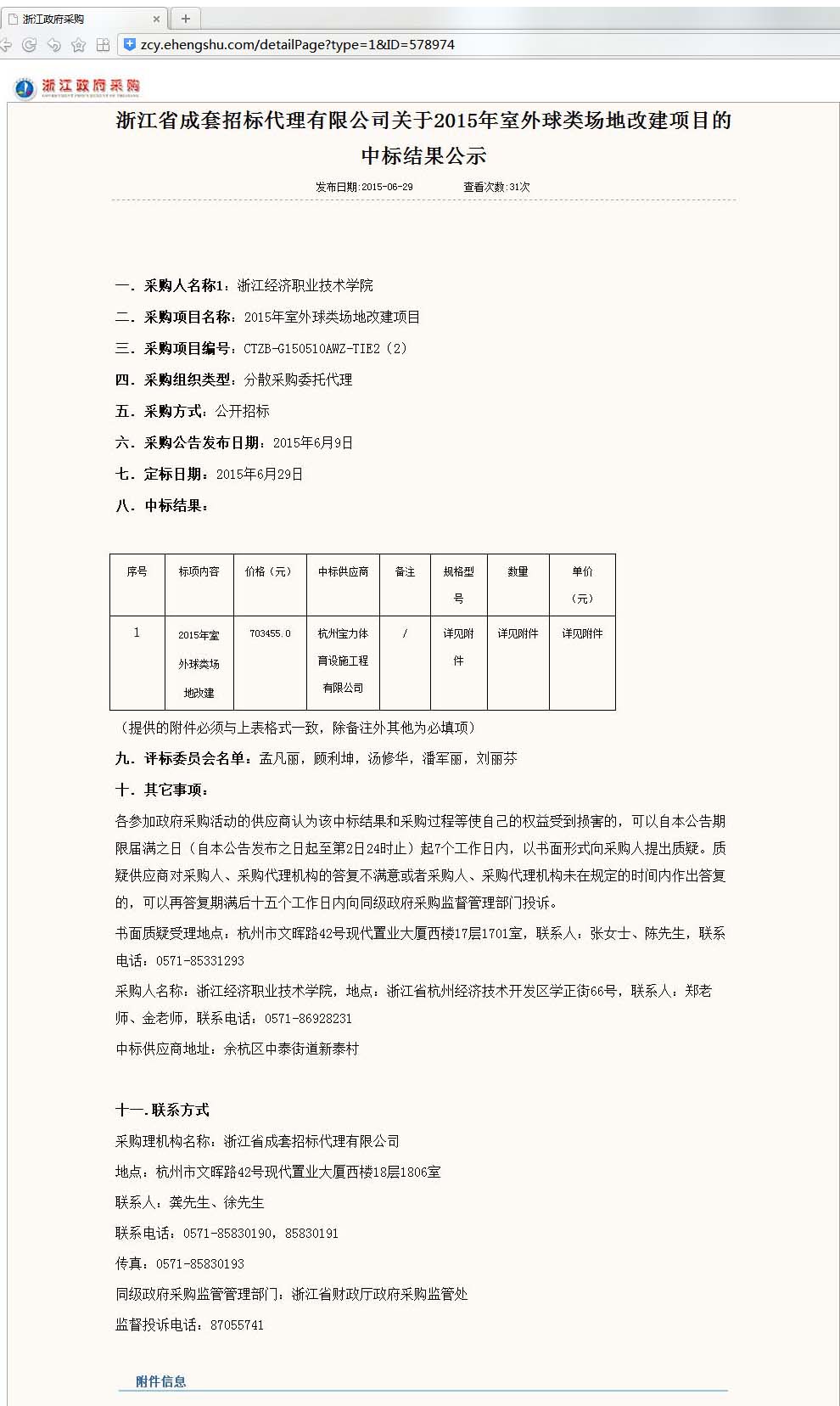 浙江经济职业技术学院2015年室外球类场地改建项目