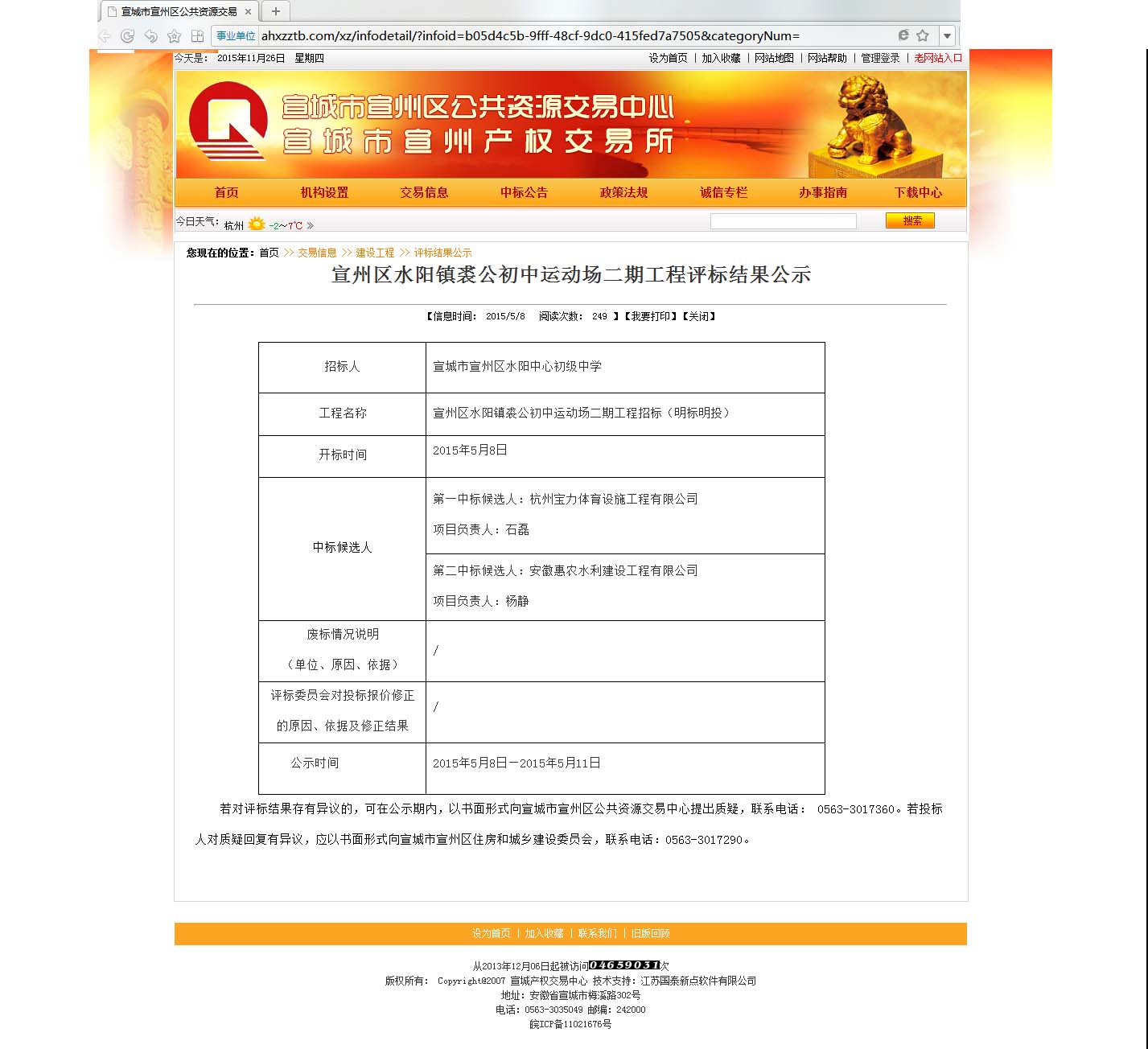 宣州区水阳镇裘公初中运动场二期工程评标结果公示