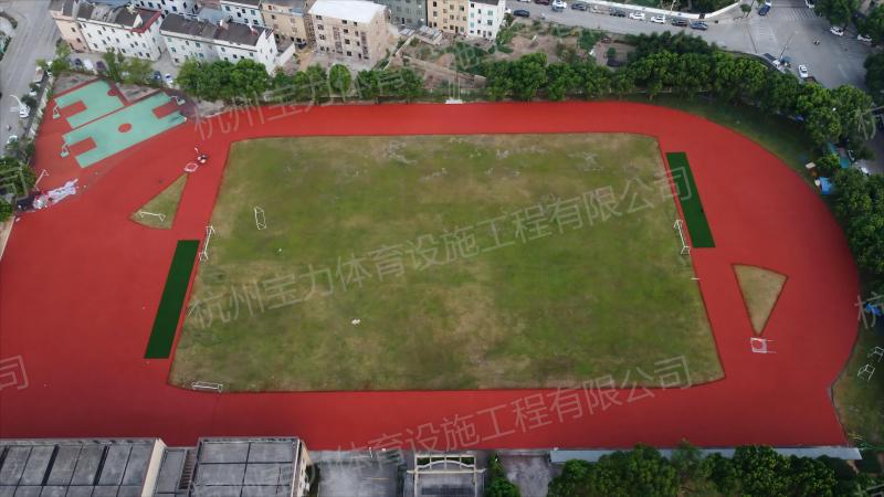 2024年由杭州宝力体育设施工程有限公司承建的宁海县黄坛镇初级中学400米透气型塑胶跑道项目,项目采用透气型塑胶跑道材料,具有透水透气、弹性优异、耐磨耐候等特点。周边配套足球门框等设施,满足足球与田径双项运动需求。